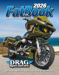 14.BRAKES.......................... 1150-1219 15. TANKS & OIL FILTERS. . . . . . . . . . . . . . . . 1220-1253 16. DASHES & GAUGES.. . . . . . . . . . . . . . . . . 1254-1281 17. FRAMES & SUSPENSION. . . . . . . . . . . . . . 1282-1365 18. FENDERS & LICENSE PLATEFRAMES..................... 1366-1399 19. FOOTRESTS & FLOORBOARDS. . . . . . . . . . 1400-1449 20. WHEELS & AXLES.. . . . . . . . . . . . . . . . . . 1450-1466 21. HARDWARE, COVERS & GENERAL.. . . . . . . 1467-1500 OEM CROSS REFERENCE.. . . . . . . . . . . . . . . . 1501-1514 VINGUIDE............................1515-1517 DRAG SPECIALTIES QUICK REFERENCE CHART. . . 1518-1520 INDEX.............................. 1521-1555 1. WINDSHIELDS & FAIRINGS.. . . . . . . . . . . . . . . . . 8-72 2. AUDIO, COMMUNICATION & MOUNTS. . . . . . . . 73-177 3. SADDLEBAGS & LUGGAGE.. . . . . . . . . . . . . . 178-269 4. SEATS & SISSY BARS. . . . . . . . . . . . . . . . . . 270-382 5.EXHAUST........................... 383-470 6. FUEL/AIR SYSTEMS.. . . . . . . . . . . . . . . . . . . 471-540 7.ENGINE............................ 541-661 8. TRANSMISSION & DRIVELINE.. . . . . . . . . . . . 662-735 9.GASKETS&SEALS.................... 736-763 10.ELECTRICAL......................... 764-845 11.LIGHTING........................... 846-955 12. HANDLEBARS, CONTROLS & MIRRORS. . . . . 956-1096 13.CABLES.......................... 1097-1149 2026 All 86 & Up Sportsters are in this 2026 FatBook™ All Evolution Big Twins are in the 2025-26 OldBook™ Please Note: